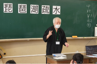 琵琶湖疏水の学習のための教材づくりと出前授業、そして体験学習として教育乗船を実施しました。